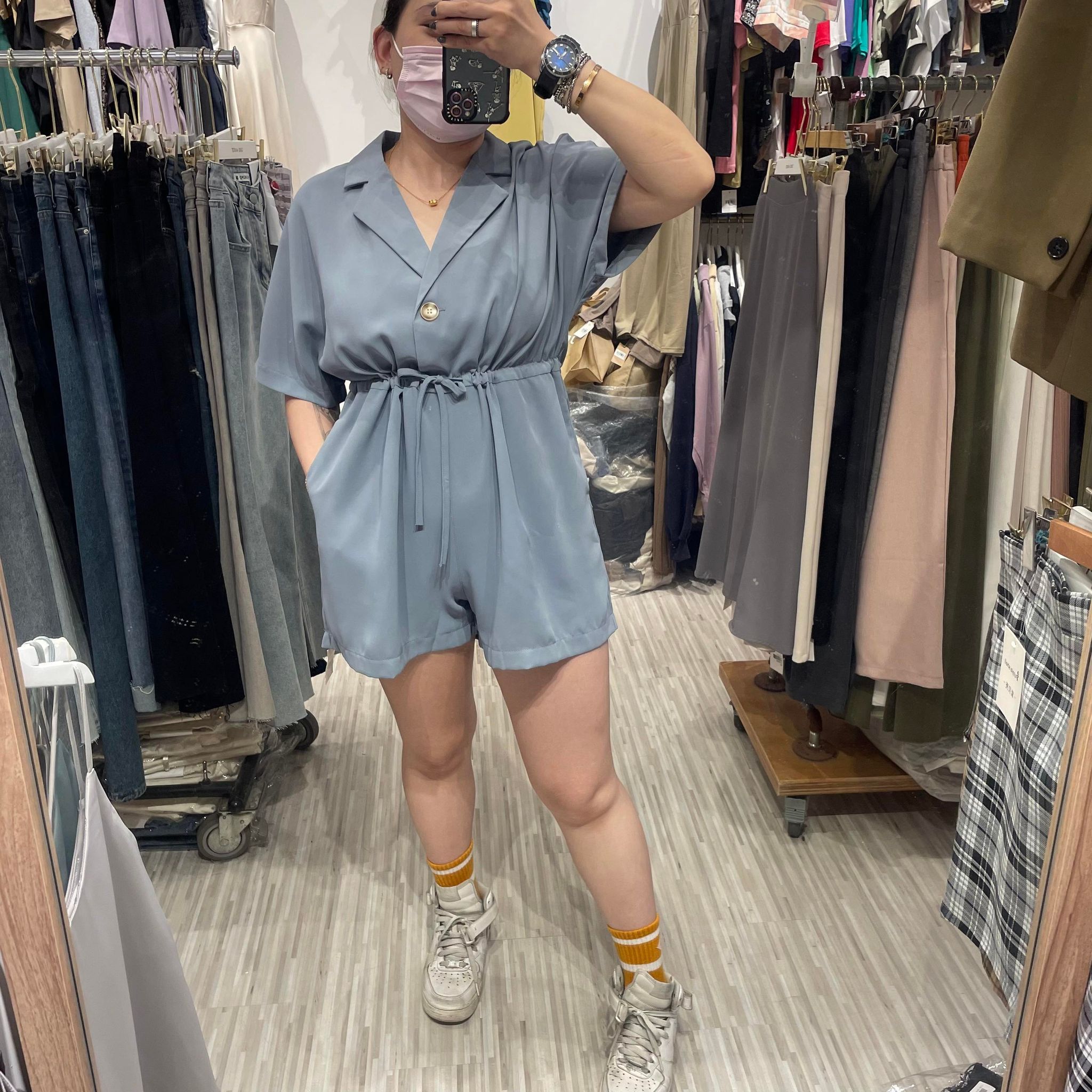 【現貨】翻領雪紡連身短褲AS82225-06