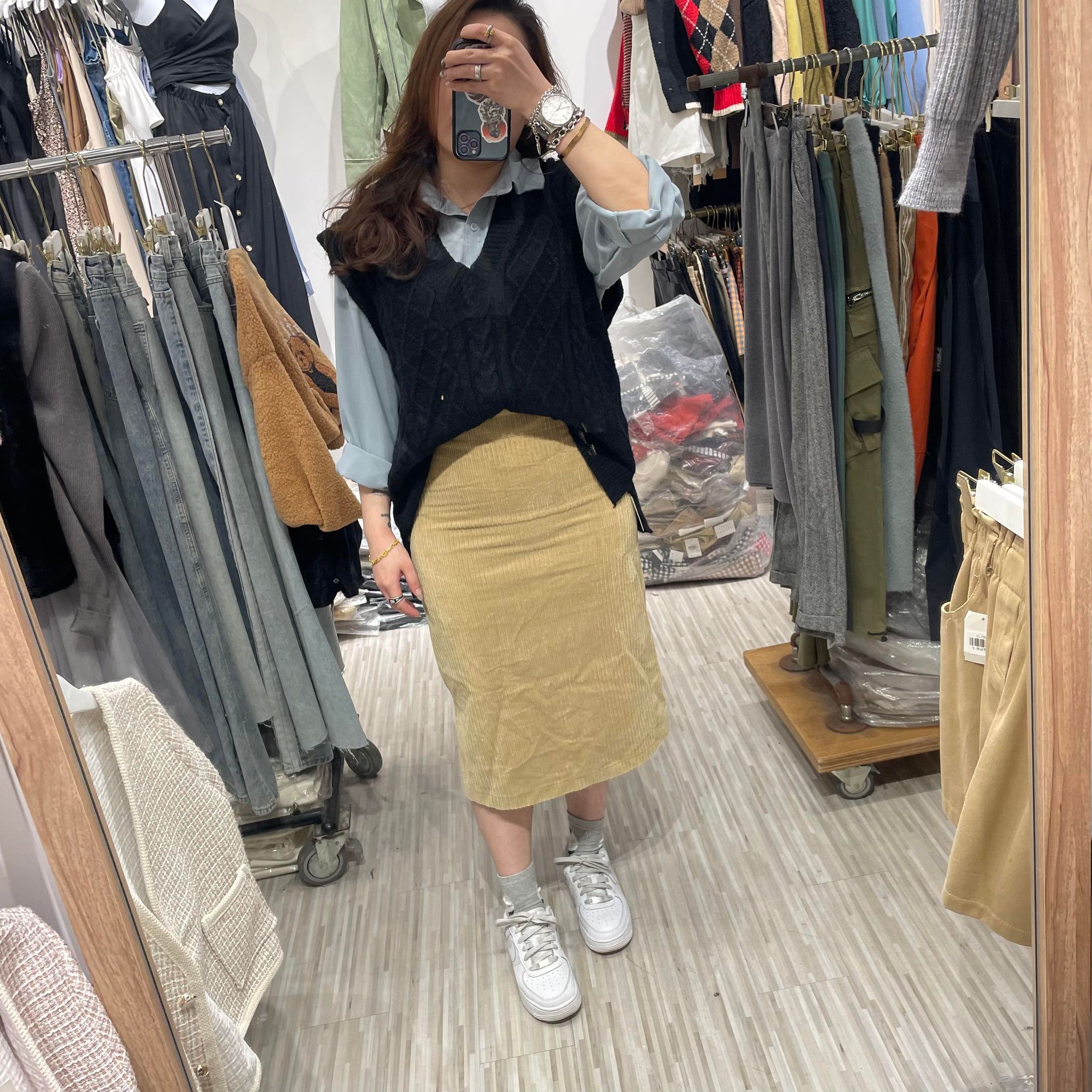 【現貨】燈芯絨中長裙